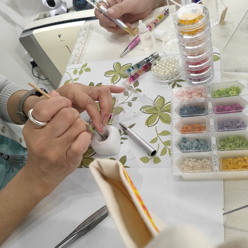 - 夏をテーマにしたスターチスのリースを作ります。