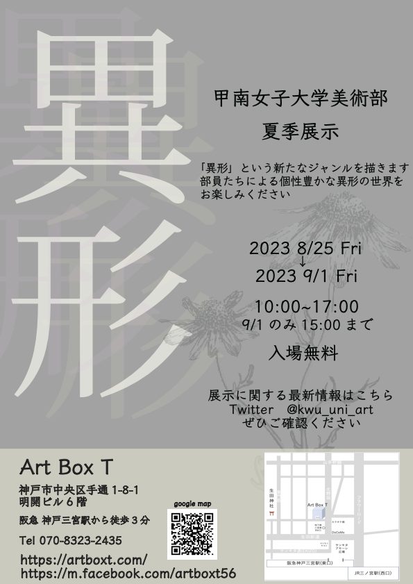 - 25日(金)〜9月1日(金) <甲南女子大学 美術部夏季展示>【異形】